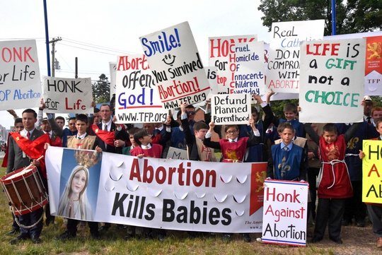 In the afternoon, we went to Lewisburg for a pro-life rosary demonstration. Â As you can imagine it was difficult for rush hour traffic to miss such a sight — 55 boys and young men holding signs, many asking cars and trucks to “honk for life.” Â And honk they did. Â The public response was decisively favorable to the pro-life message, especially the truck drivers who enjoyed blaring their loud horns. The boys loved it. Â From what we could tell, about 75% of the public agreed with the pro-life message, while 10% were opposed and 15% just indifferent.
