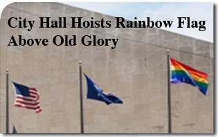 However, they were not raising old glory. Instead they were hoisting the very symbol of the opposition: a rainbow flag, with the approval of city mayor Matthew Ryan.