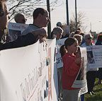 Catholics in Rochester did not want to wait until the May 19 opening to protest The DaVinci Code movie. The local theater was already advertising the film and so they decided to lead the way by becoming the first of the over 1,000 planned theater protests. Nearly 50 Catholics, young and old, paraded with signs and banners in front of the Tinseltown USA Theatre on Buffalo Road to express their indignation towards the blasphemous movie.