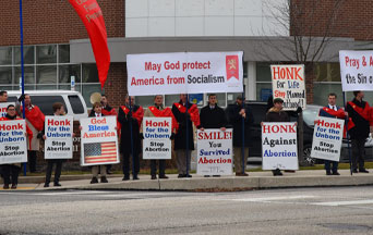 A big attraction of the conference was the TFP Student Action street campaign on Sunday outside Harrisburg, Penn. The young men held signs and banners denouncing the evils of abortion and socialism. The signs encouraging passing cars to support the campaign resulted in a barrage of honks from enthusiastic locals.