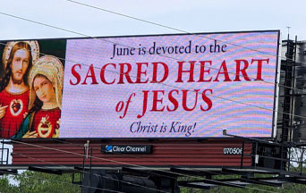 Once the location was secured, it was time to design the billboard with a picture and a message. She chose a picture portraying both the Sacred Heart of Jesus and the Immaculate Heart of Mary. The wording was simple: “The Month of June Is Devoted to the Sacred Heart of Jesus. Christ is King!”