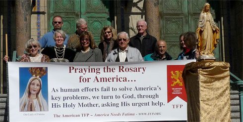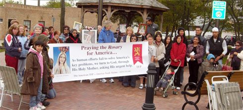 On October 10, 2009, the Saturday closest to October 13, the anniversary of the Miracle of the Sun at Fatima, 4,337 Rosary Rally captains organized groups to pray the rosary in front of town halls, in busy intersections, in front of malls, and other public locations.
