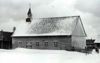 In 1964, they began to rebuild the church building at the fort. The location was known because a map of the fort had been drawn in 1766. The archaeologists found evidence of a small building built about 1720 that was replaced by a larger one around 1740. Other than the fact that it was constructed of squared off logs laid horizontally, no one knew for sure what it had looked like.
