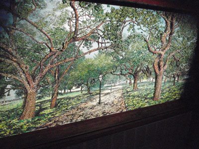 During his convalescence he began “dabbing” as he calls it which later led to the Dabistic technique he eventually mastered and trademarked. This method involves a painstaking and labor-intensive process of building multiple layers of paint with a very fine brush. The end product is a woven framework of layered colors which allows a ricocheting of light that causes a marvelous shimmering effect for the viewer. It makes a painting come alive, which is what I saw with my own eyes when I visited his gallery on East Battery Street.