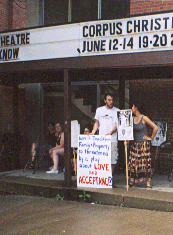 Catholics from Ohio, Kentucky, Missouri, Pennsylvania and even Michigan joined the nearly 150 local activists at the Saturday afternoon rally that attracted the attention of local media â and a gaggle of about 20 pro-Corpus Christi supporters camped out on theater property.