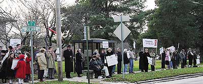 Mr. Robert Ritchie, director of America Needs Fatima, agreed to contact members throughout the area. Parishes in the Kansas City and Wichita dioceses also were contacted. A number of parishes announced the protest from the pulpit and others placed it in their parish bulletins. The Wichita diocesan newspaper even had an article about the protest and gave a meeting place for those wishing to travel together to attend.