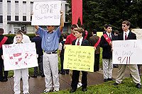 Two activities of this year’s course merit special mention. One was a Friday morning protest at an abortion clinic in Harrisburg, Penn. The boys had spent the previous day coming up with slogans to put on their protest signs. “It is important to teach boys to stand up for their beliefs,” said camp counselor Cesar Franco. “That is why we brought the boys out to protest. I think it will have a truly beneficent effect on them.” The other was a trip to see the battleship USS New Jersey, currently docked in Camden, New Jersey. The boys had a private tour of the ship and ate lunch in its mess hall.