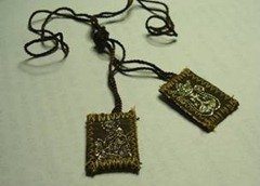 The scapular of Our Lady of Mt. Carmel, also known as the Brown scapular, is one of the most popular and celebrated of Roman Catholic devotions. The sacramental as the lay faithful commonly use it is a miniature derivative of the actual brown scapular used by the Carmelites and other religious orders – the sleeveless outer garment falling from the shoulders which is worn as a sign of their vocation and devotion.