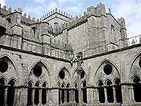Built in the twelfth century, the Cathedral of Oporto demonstrates austerity and fortitude. It is the work of a people who saw the world as a continual struggle and valley of tears, fraught with difficulties of every sort. This is seen in the fortress-like appearance of the cathedralâs façade and exterior of rough stone. The immensity of the pillars that hold up the ceiling on the inside, impress one with the weight of their burden.