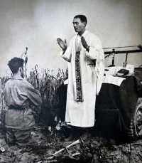 Then, he wept because there was no bread or wine to consecrate so that the men could receive the Eucharist. The U.S. Army chaplain, with a patch covering his injured eye and supported by a crudely-made cane, may have been broken in body, but was strong in spirit.
