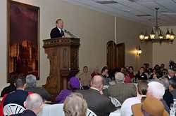 After Mass, the closing dinner as held at the grand ballroom of the nearby historic Yorktowne Hotel with closing remarks by TFP Chicago Bureau chief, C. Preston Noell III, who spoke of the lessons learned from The Da Vinci Code protests. The participants had seen the basics and, now, were ready for further action. As the final farewells faded into the night, they came to realize how basic and reassuring it is to come together for events of Catholic fellowship and camaraderie. All prepared for the long return home where new battles certainly await.