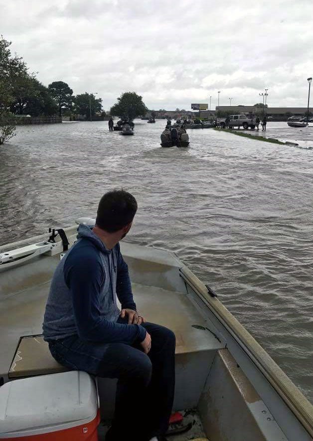 The Houstonia Magazine report also includes a picture of a long line of trucks hauling fishing boats to the flooded areas. This is the famous “Cajun Navy,” a community-organized group of Louisianians which, as a makeshift flotilla of volunteer rescuers in 2005, used their own boats to help evacuate thousands from Katrina-stricken New Orleans. When flooding again hit Louisiana in 2016 they rescued thousands more. Now they decided to drive out to Texas at their own expense to help out.