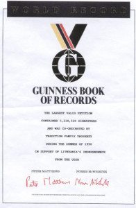 In the last years of his life, Mr. Fred stood out for his leadership qualities. He was asked to lead a “caravan,” a group of young volunteers, which would travel the country in a massive petition drive collecting signatures for the independence of Lithuania. In 1990, Lithuania sought freedom from the tyranny of Soviet communism. In a worldwide effort, the TFPs collected more than five million signatures, in what the 1993 Guinness Book of World Records termed the largest verifiable petition drive in history.