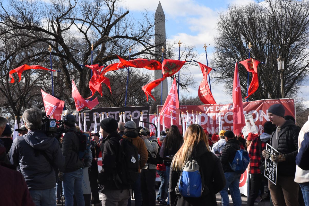 A veritable sea of banners and signs from groups around the nation blanketed the National Mall at the opening rally. An immense crowd then filled the streets parading toward the Capitol. Everywhere young people and families were proof that the movement has a future. Pro-abortion counter-protesters were nowhere to be found.