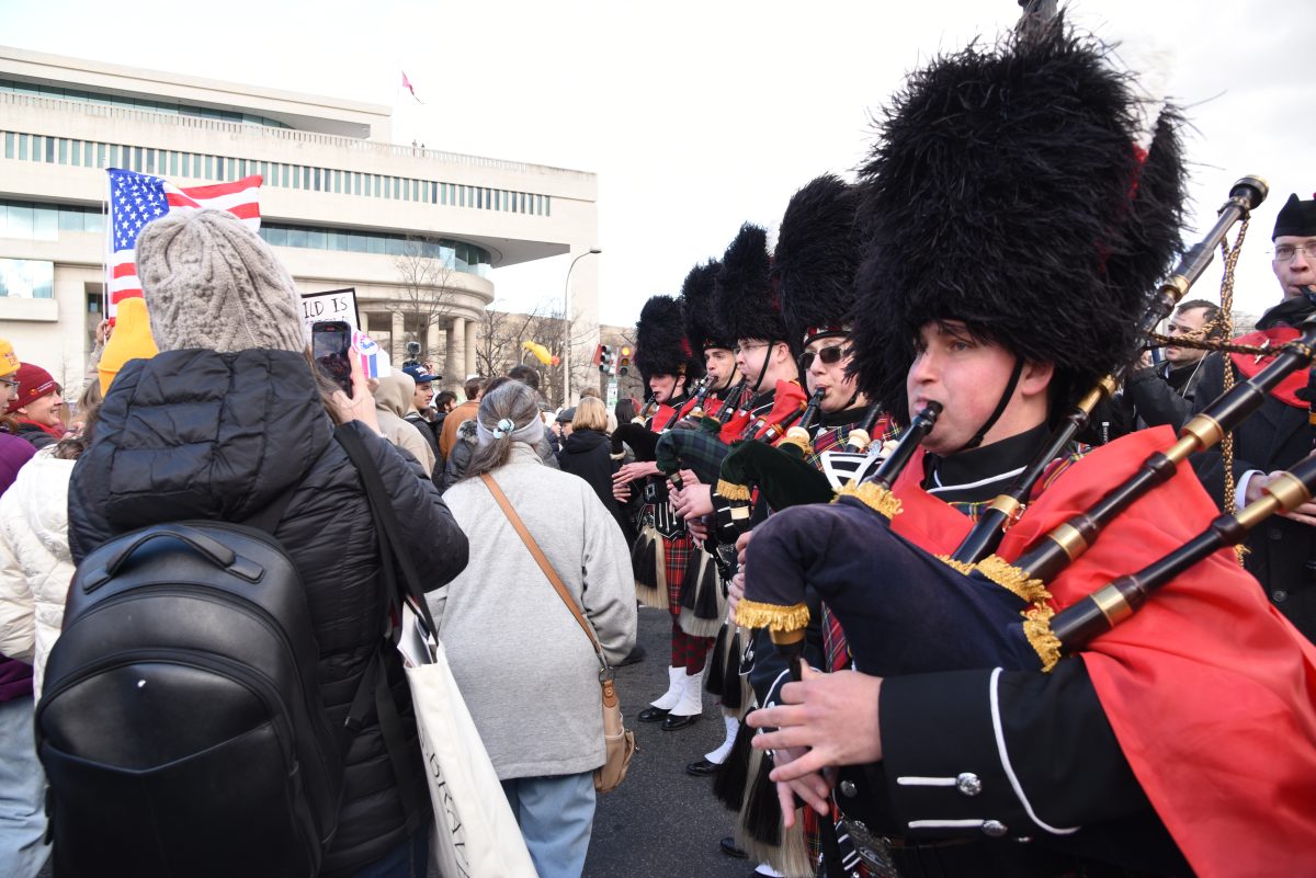 Members of the American Society for the Defense of Tradition, Family and Property (TFP) along with its Holy Choirs of Angels Marching Band playing bagpipes, brass, fifes, and drums, joined the marchers. The music was upbeat and firm, encouraging those marching to strengthen their resolve to defeat abortion.