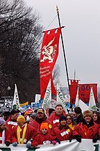 Over 100 TFP members, friends and supporters also attended the march, with hallmark standards, capes and banners, and their Holy Choirs of Angels marching band which enlivened the event with patriotic music.