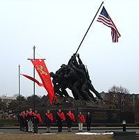 Running low on ammunition, the Marines went back down the steps to reload when a terrorist lobbed a grenade in their direction. In spite of the painful shrapnel wounds to his legs and the intensity of the fight he was now engaged in, Sgt.