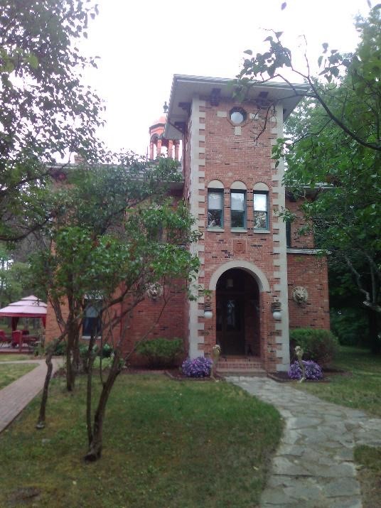 However, it was hard to find my destination. Hidden behind a screen of tall trees, I finally located the center. The Kirk house was an âItalianateâ brick structure with an entrance tower and central cupola atop the roof. It was part small villa, part Scottish castle and part hermitage as befits an imaginative conservative.