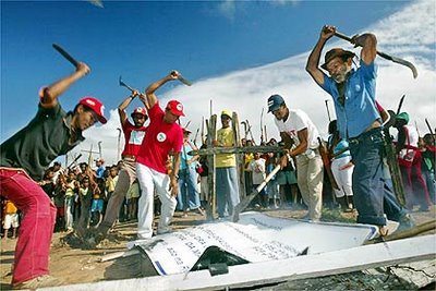 The group’s M.O. ( modus operandi) is to invade farms and set up camp, appropriating everything and establishing “community gardens.” Landowners who initiate repossession proceedings in the courts are threatened and even killed. To prevent authorities from carrying out court-ordered evictions, the invaders occupy highways leading into the area and demand the presence of authorities in discussions with them.