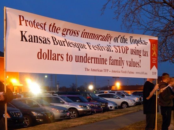 Fifty-two brave individuals protested the “Kansas Burlesque Festival” in Topeka, Kansas on March 5th. They are brave because to stand up for what is right requires bravery. It is so much easier to talk about traditional values than it is to prove one’s convictions with actual deeds.