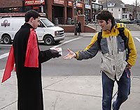 Later on two women, who looked like professors, approached TFP Student Action member Cesar Franco. One began: “What is this?” When Mr. Franco explained that the TFP was opposing the upcoming film, “The Da Vinci Code,” they laughed loudly, trying to belittle the effort, and declared, “You just need to live and let live!”