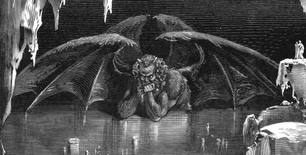 Photo: âLucifer, King of Hellâ engraving by Gustave DorĂ© illustrating Canto XXXIV of Divine Comedy, Inferno.