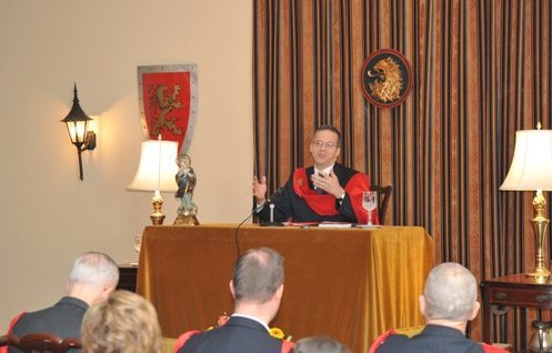 Upon return to TFP Headquarters, many marveled at the transformation which had taken place in their absence. The tent for meals had been taken down entirely, and the indoor meeting room had been transformed into a medieval banquet hall. Amid great mirth, the highlight of the evening, and, as many would remark later, of the conference as a whole, was the keynote address given by Prince Bertrand of Orleans-Braganza, who spoke on “Return to Order and the Triumph of the Immaculate Heart of Mary.” So important was the speech to him, that for the first time in his many years of attending the American TFP’s conferences, his remarks were given entirely in English.
