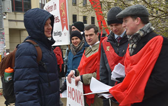 It took a few minutes for our message to sink into the minds of the university students. Their faces were marked by curiosity as they read our banner, which read: “Protect Children in Schools and Libraries—Stop the Ravages of LGBT Ideology.”