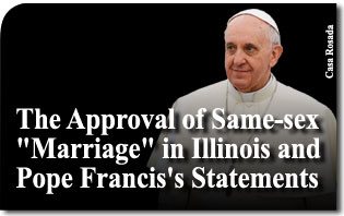 This is how Fabien Tepper begins her report in The Christian Science Monitor of November 6, 2013 on the approval of same-sex “marriage” in Illinois. In it she highlights how Pope Francis’s words on homosexuality influenced that approval.2