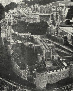 Consider the aerial view of Windsor Castle shown in the upper picture. The first impression one has is of a setting for a fairy tale—the immensity of the edifice, the marvelous variety of its parts, the delicacy and strength affirmed in all of them, everything suggests that one is in the presence of something that goes far beyond daily reality.