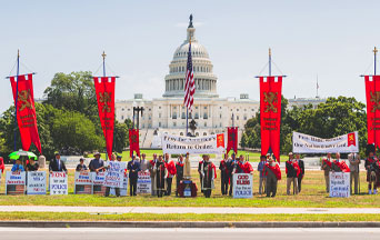 This amplification could be observed during the Flag Caravan, the biggest caravan the American TFP has done to date. It was a petition drive to defend the honor of the American flag involving as many as sixty volunteers in as many as five vehicles. It visited many major cities in the continental United States. At the start, there was a general apathy to prevent the flag from desecration. As the caravan went from state to state, the public opinionâs awareness on the issue grew exponentially, and the caravaners noticed a shift. The caravaners collected over 130,000 signatures over the summer which was submitted to White House Chief of Staff, John Sununu, and Senator Bob Dole. The issue stayed hot in the decades that followed. In fact, the 104th to 109th Congresses voted on a constitutional amendment to protect the flag from desecration.5