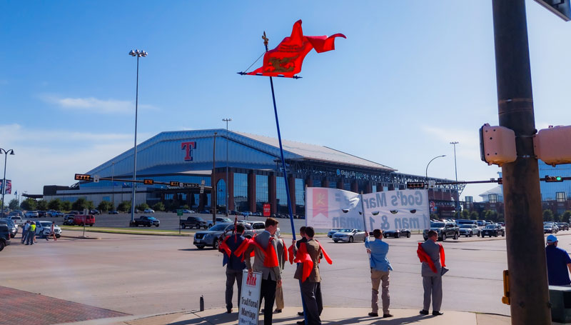 In Lake Charles, La., two women showed up displaying signs. One read “Stop using our god to spread your hate” with a rainbow cross in the center. After seeing the overwhelming support for traditional marriage, the two slowly crept away without saying a word. They saw for themselves that America does not accept sodomy as marriage.