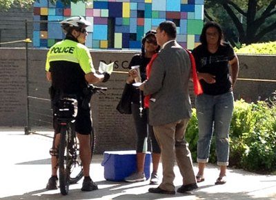 The two volunteers offered Saint Michael medals to the police since their role was to keep order. Whenever the medal was offered, the police took them, shook hands and showed themselves extremely grateful. One police officer said: âWell, I already have one on me, but I will take one for my friend, he needs one.â