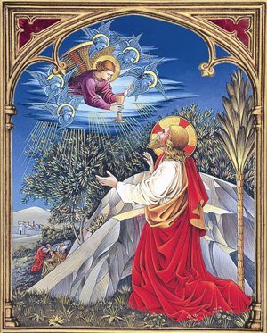Through a series of unspeakable, violent deicidal actions, that Blood was shed in the scourging, the crowning with thorns, the cross, and torments of all kinds. That Blood was shed by the great anguish of soul when Our Lord, in His agony, began to suffer and sweat blood all over His Body.