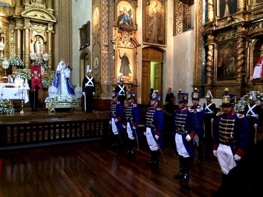 In very military fashion, an honor guard of soldiers in impeccable dress uniform marched down the center aisle of the convent church at around 4:30 in the morning. They would be Our Ladyâs escort and provide protection from the crushing faithful eager to touch her royal mantle.